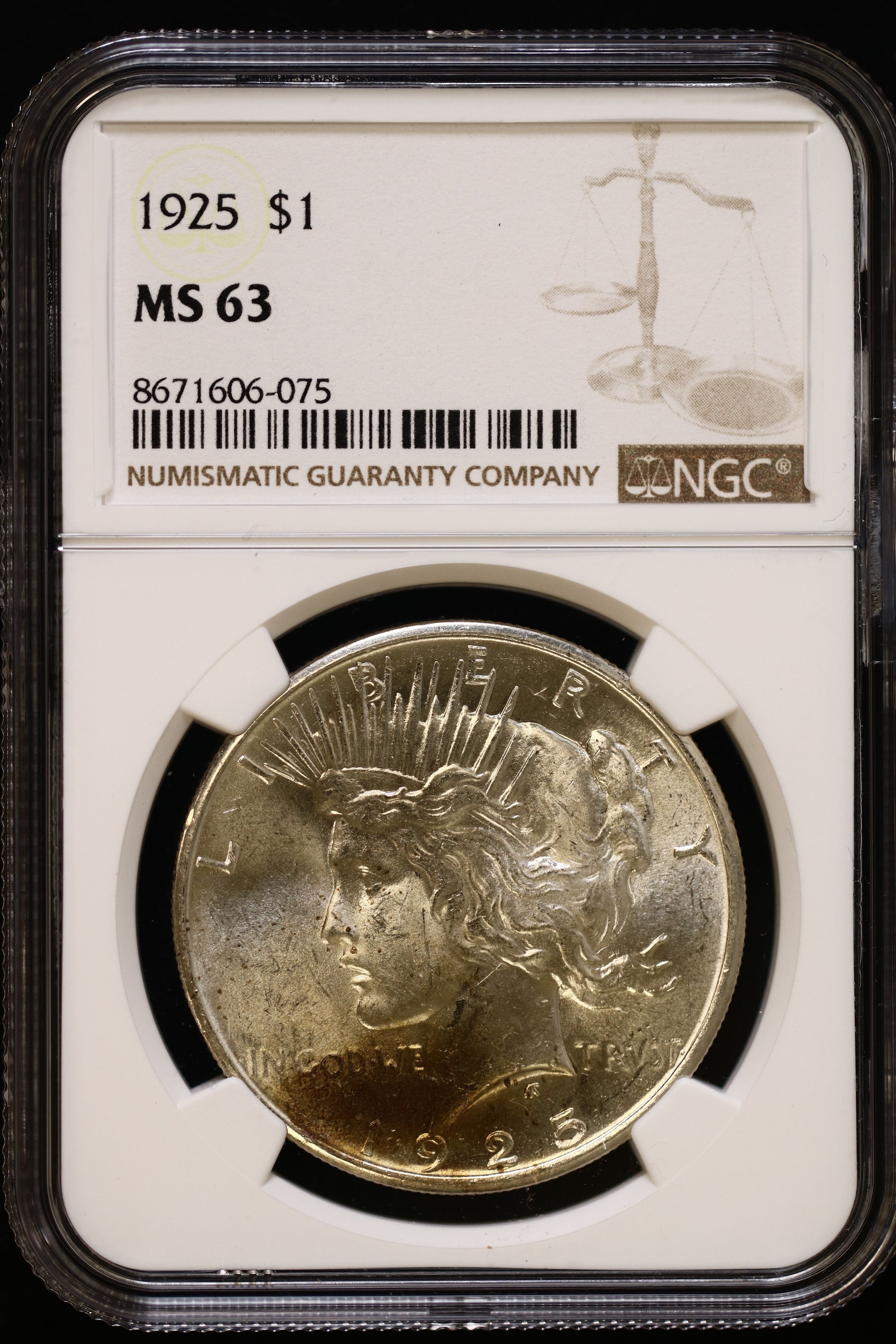 US 1925 Peace Silver Dollar MS-63 NCG S800